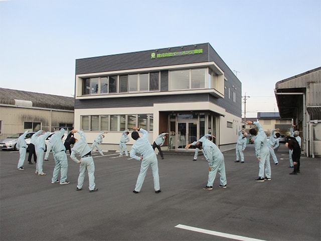 私たちは、健康増進・生活習慣予防対策として毎日、朝礼後にラジオ体操を実施しております。